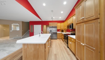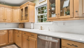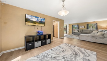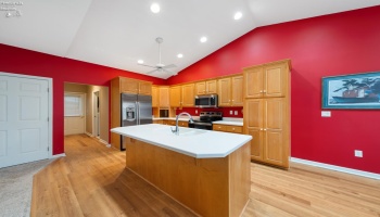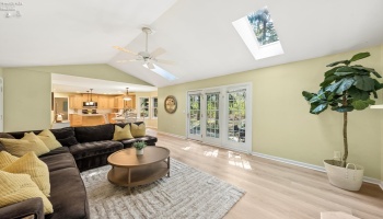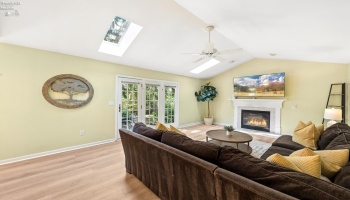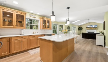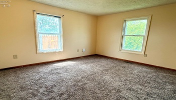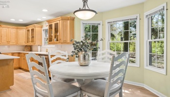 Experience country living in this 2,000 sq. ft. colonial residence featuring 3-4 bedrooms and 2 bathrooms situated on a spacious two-acre lot. The covered front porch leads into a tiled foyer, while the living room boasts vaulted ceilings. The eat-in kitchen is equipped with a breakfast bar, pantry, and appliances including a range, refrigerator, microwave, and dishwasher.
