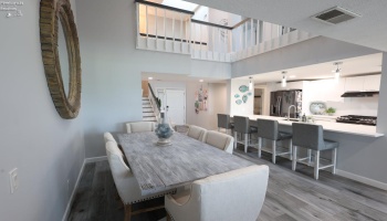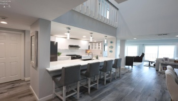 Experience extraordinary lakefront views from this stunning Mariner Village penthouse condo! This dramatic two-story townhouse features an open floor plan filled with natural light. Lovely living room boasts an updated gas fireplace and a wall of sliding glass doors leading to a Nature Stone balcony that overlooks the marina and lake.
