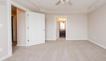 Step into luxury living in this spectacular Harbor's Edge home. This well designed 3-bedroom ranch offers an open, airy floor plan designed for entertaining, featuring vaulted ceilings and expansive windows, with electric blinds, that fill the space with natural light.The kitchen boasts impressive cabinet and counter space, highlighted by an oversized island perfect for gathering.
