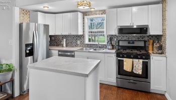 Exceptional quality is evident throughout this 3 BR, 2 BA brick ranch, which was thoughtfully maintained and updated at every turn! Set on 1.6 +/- acres with a wooded view, offering a country feel while still close to everyday conveniences. The open kitchen features granite counters, custom soft-close cabinetry, ceramic backsplash and flooring, plus an eating area.
