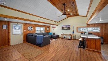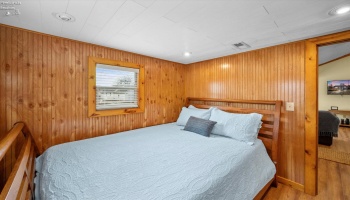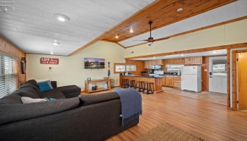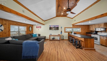 Discover lake-time luxury in this exquisite 3,018sqft home located in the gated community of Bar Harbor. This waterfront oasis features 5 elegant bedrooms & 5 baths, designed with meticulous detail throughout. The charming entry leads past a pocket office & opens into an inviting living area anchored by a striking floor to ceiling shiplap fireplace enhanced by 10-foot ceilings.