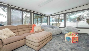 Immaculate and move-in ready, this rare Timber Lake condo offers over 2,000 sq ft of beautifully maintained living space. The main floor features a spacious, open living room highlighted by a cozy fireplace, vaulted ceilings, and oversized windows that fill the space with natural light.