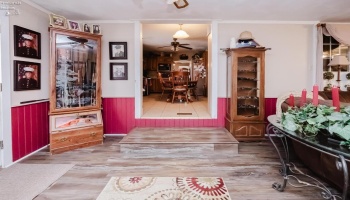 Welcome to easy living! Owner of 9 years improved the unit inside & out. Kitchen flooring was done 7/2025, exterior skirting & storm windows, all interior windows were reworked to function correctly. Roof was coated and seams sealed, interior & exterior painted, carpet in hallway & bedrooms, pedestal sink in bathroom, new smoke detectors were installed. All other windows were redone in 2023.