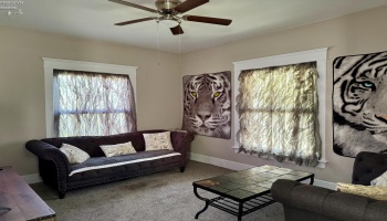 Experience country living in this 2,000 sq. ft. colonial residence featuring 3-4 bedrooms and 2 bathrooms situated on a spacious two-acre lot. The covered front porch leads into a tiled foyer, while the living room boasts vaulted ceilings. The eat-in kitchen is equipped with a breakfast bar, pantry, and appliances including a range, refrigerator, microwave, and dishwasher.