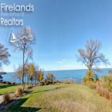 On the North Side of Lakeshore Blvd. Pull onto grass lawn from the driveway adjacent to the property.